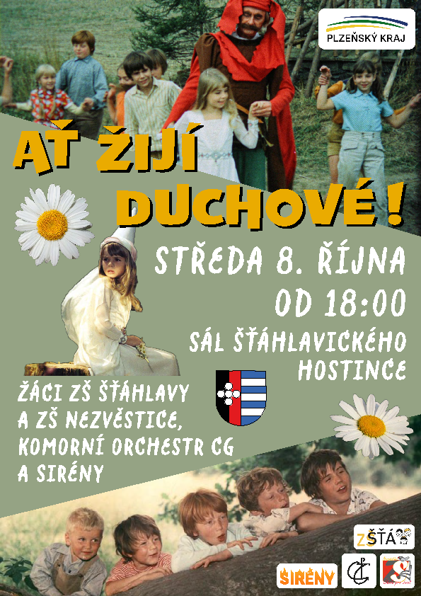 V rámci tradičně dobré spolupráce se ZŠ Šťáhlavy se i letos naše škola částečně podílí (konkrétně dvě žákyně ze 6. a 7. ročníku) na hudebně divadelním představení Ať žijí duchové, které proběhne 8. října od 18. hodin v sálu šťáhlavického hostince.