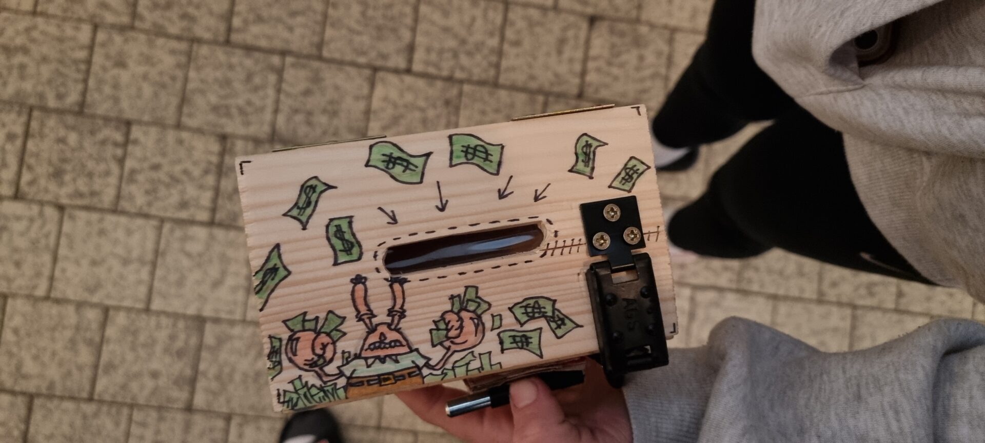 2. Chytře zabezpečená pokladnička – Tento projekt ukázal žákům, jak lze pomocí programování zvýšit bezpečnost. Pokladnička využívala jednoduchý elektronický zámek ovládaný Micro: bitem, který reagoval na správně zadaný kód nebo gesto.