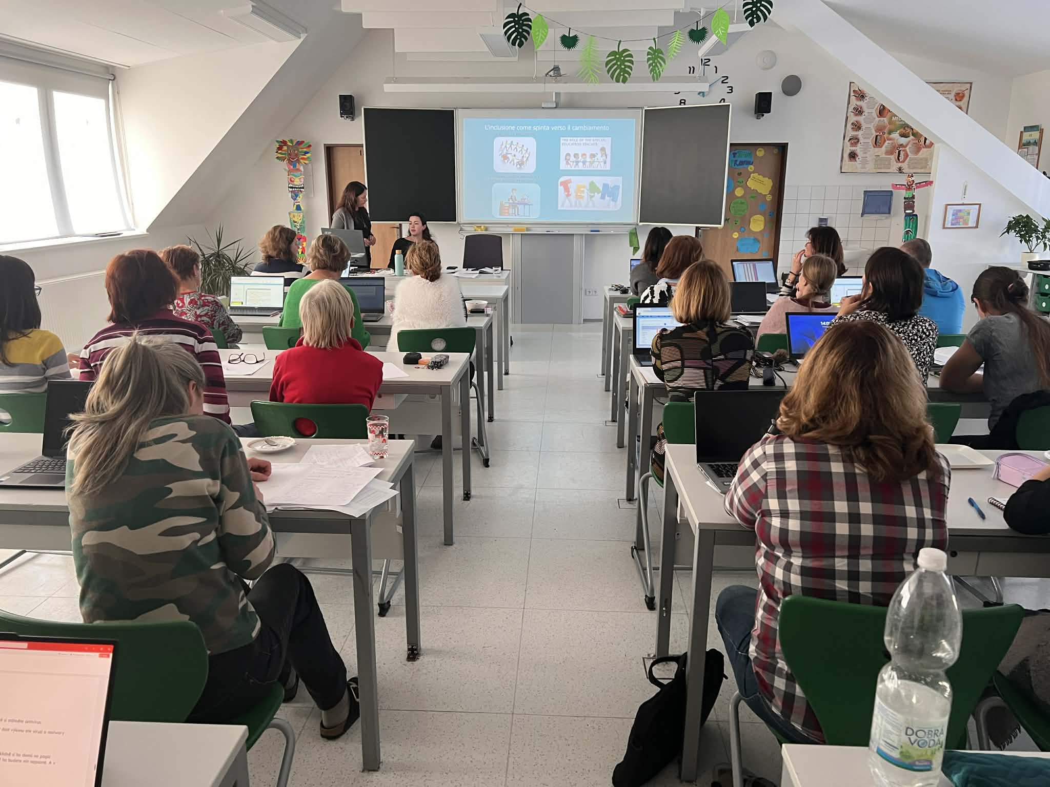 Na naši školu přijela Patrizia díky programu Erasmus + jako hostující odborník. Věnovala se zde monitoringu, odbornému poradenství a intervenci, přímé pedagogické činnosti v některých třídách 1. stupně, vedla přednášku i odbornou diskusi s našimi pedagogickými pracovníky apod. Ve volném čase objevovala krásy našeho blízkého okolí (např. zámek Kozel, Blatná, Plzeň apod.).