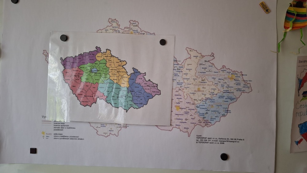 Všechny děti mají vlastní mapu země, aby mohly zakreslovat a zapisovat, kudy vede naše jízda. V dalších měsících už navštívíme jednotlivé kraje a dozvíme se další zajímavé informace.
