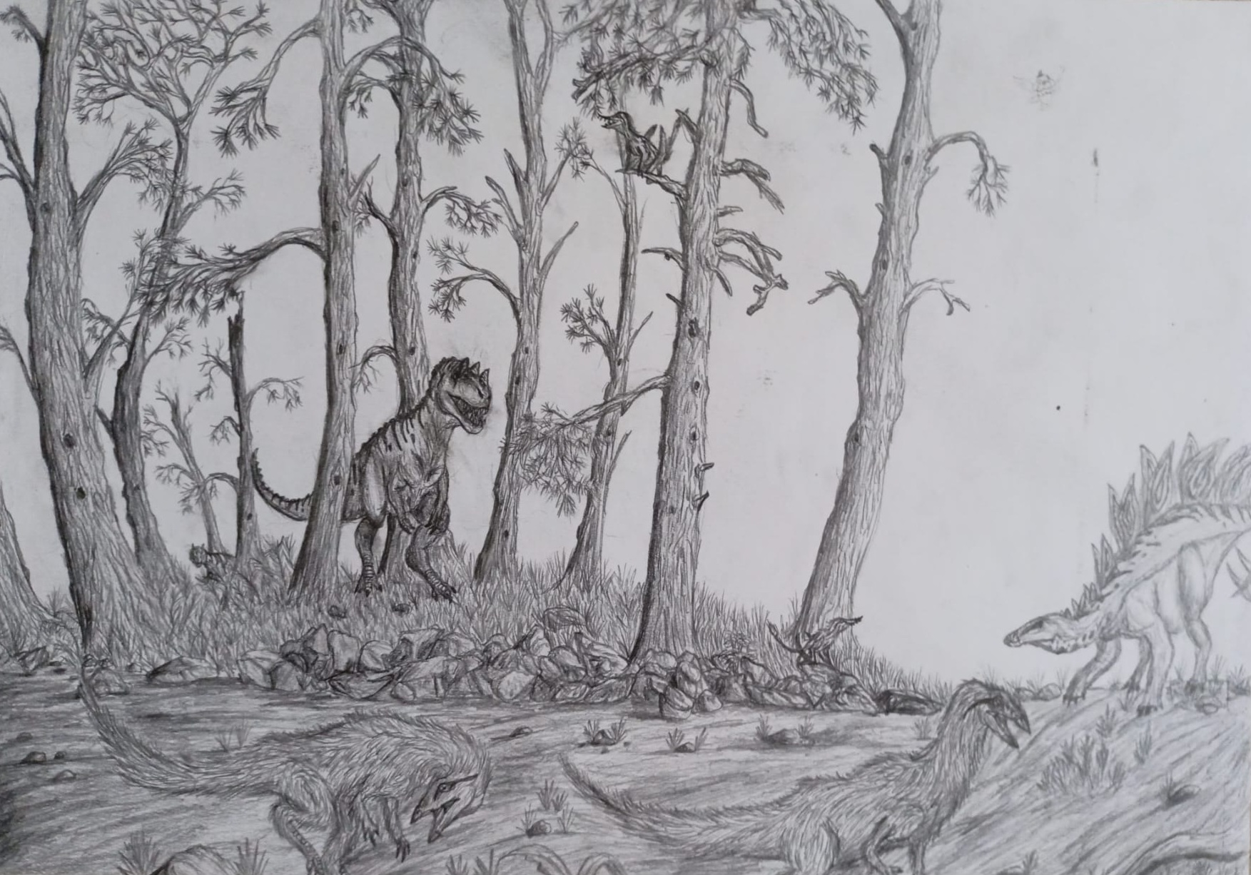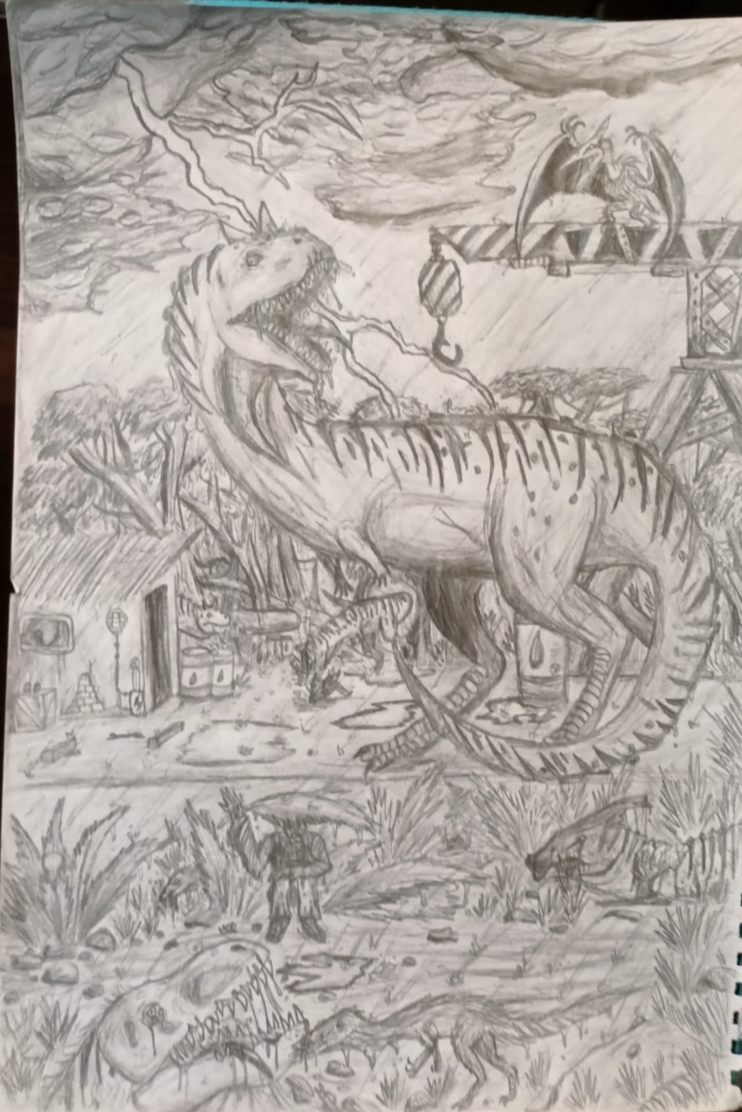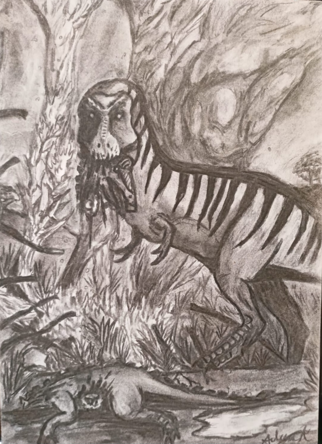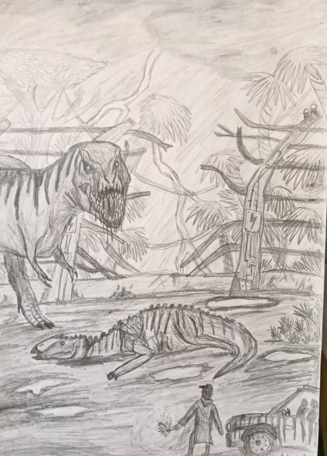 Ale abych byla přesnější, Adam kreslil a kreslí nejen v hodinách výtvarné výchovy, na jeho skici bude jednou vzpomínat nejeden vyučující – kresby v sešitech, testech… stačí malá chvilka, kousek místa na papíře a skica je na světě. Adam zvládá bravurně nejen prehistorická zvířata, do nichž vkládá svůj osobitý pohled na ně, ale nezaskočí ho jakékoli jiné téma.