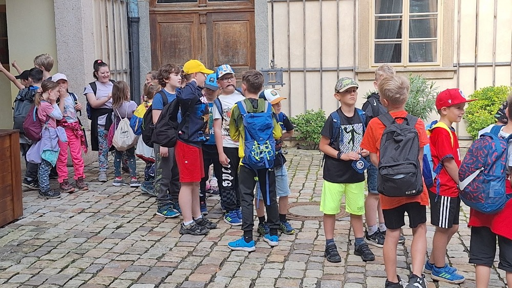 Dne 6.6.2024 čekal děti z 1.-3. třídy poslední výlet v tomto školním roce. Měli jsme v plánu zajet do Mníšku pod Brdy a pak na zámek Blatná.