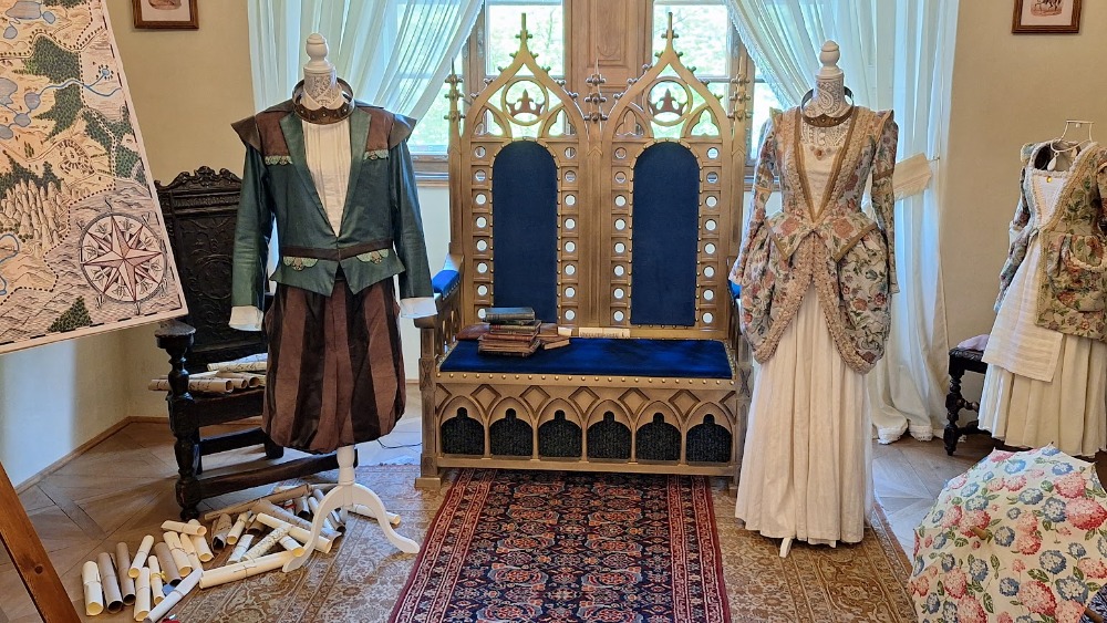 Cesta dvěma autobusy utíkala vážně rychle, a tak jsme v Mníšku byli cobydup. Tam jsme se rozdělili do 3 týmů, a potom se nás ujaly průvodkyně, které byly stylově oděny v kostýmech. To se dětem moc líbilo. Každý tým absolvoval prohlídku pohádkové trasy, komnaty, ve kterých se točila pohádka Tajemství staré bambitky 2 a dílničku, kde si děti obarvily odlitek na památku.